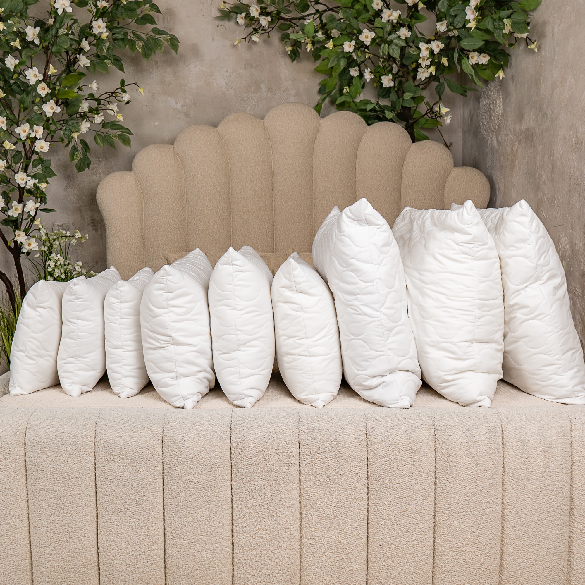 A párna varrott steppeléssel készül, amely segíti a töltet egyenletes eloszlását.